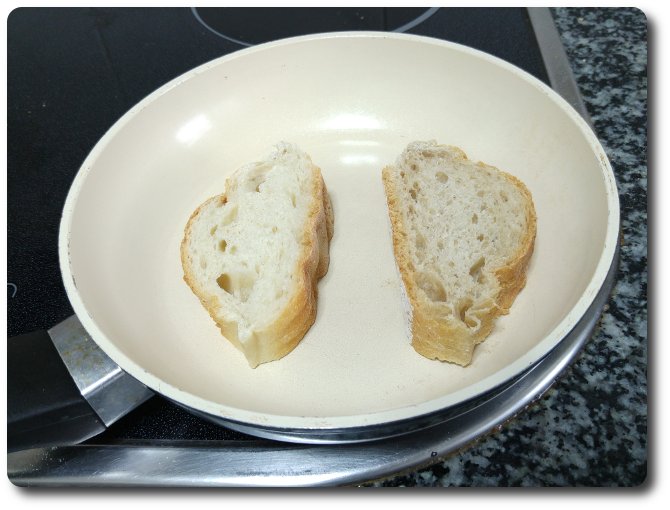 Para estas de hoy vamos a emplear dos tipo de pan. Una barra de pan blanco común, y otra de pan de país, o pan Gallego, en el que se emplea trigo de Galicia, y que le da un aspecto más oscuro, más rústico y es más sabroso.