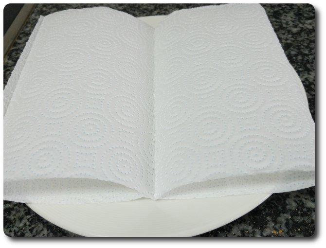 También colocamos papel absorbente en un plato que será a donde saquemos nuestras torrijas una vez hechas para que elimine el aceite sobrante.