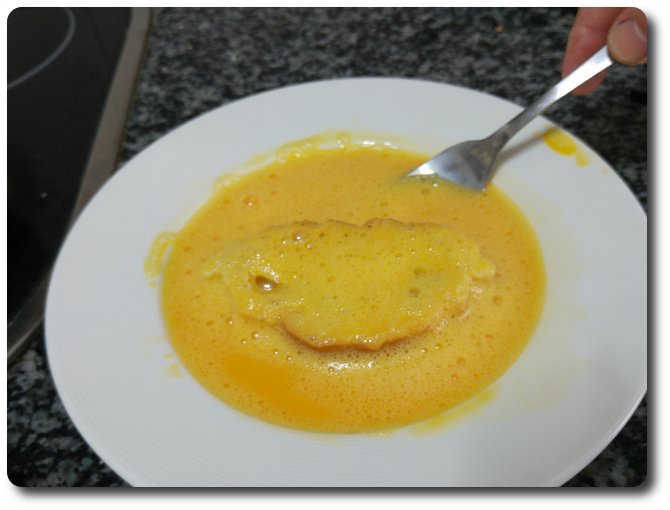 Mojamos en huevo nuestras rebanadas de pan empapadas previamente en leche.